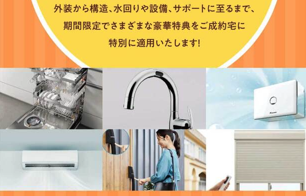 上記は特典の一例で、建物請負金額2,000万円(税込)以上の方で、2025年3月31日までに着工できる方が対象だよ。